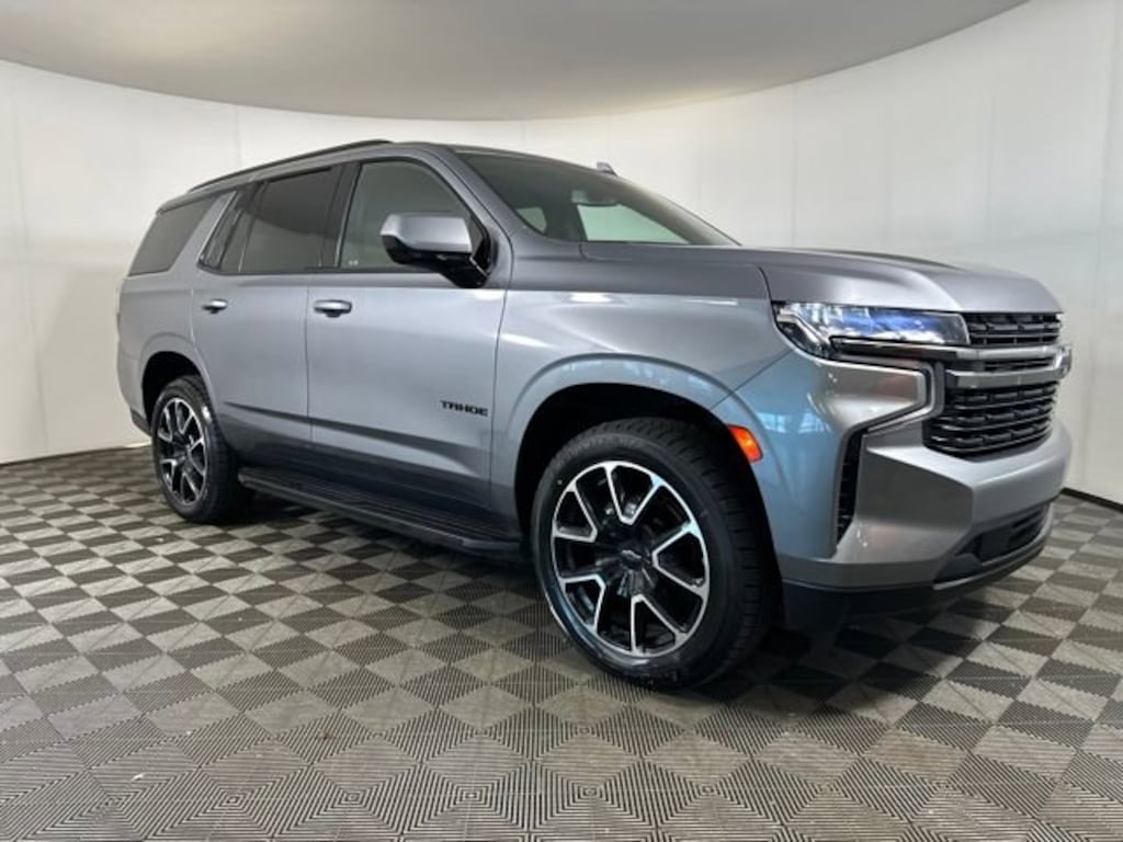 Ron Marhofer Chevrolet is proud to offer this charming-looking 2021 Chevrolet Tahoe in Satin Steel Metallic. This 2021 Chevrolet Tahoe has passed our comprehensive inspection and comes with the following features; Preferred Equipment Group 1SP (1st & 2nd Row Color-Keyed Carpeted Floor Mats, 2 USB Data Ports, Auto-Dimming Inside Rear-View Mirror, Bright Front & Rear Door Sill Plates, Color-Keyed Carpeting Floor Covering, Driver & Front Outboard Passenger Airbags, Floor Console w/Storage Area, Hands-Free Rear Power Programmable Liftgate, HD Radio, Infotainment Display, Leather-Wrapped Steering Wheel, LED Daytime Running Lamps, Memory Settings for Driver, Remote Start, SiriusXM Radio w/360L, and Universal Home Remote), Rear Media & Nav Package (Radio: Chevrolet Infotainment 3 Premium System, Rear Seat Media System, and SiriusXM NavTraffic), 4WD, Jet Black/Victory Red Leather, 10-Way Power Driver & Passenger Seat Adjusters, 3.23 Rear Axle Ratio, 3rd row seats: split-bench, 4-Wheel Disc Brakes, 9 Speakers, ABS brakes, Air Conditioning, Alloy wheels, AM/FM radio: SiriusXM with 360L, Apple CarPlay/Android Auto, Auto High-beam Headlights, Auto-dimming Rear-View mirror, Automatic temperature control, Bose 9-Speaker Stereo Audio System Feature, Brake assist, Bumpers: body-color, Compass, Delay-off headlights, Driver door bin, Driver vanity mirror, Dual front impact airbags, Dual front side impact airbags, Dual-Pane Power Panoramic Sunroof, Electronic Stability Control, Emergency communication system: OnStar and Chevrolet connected services capable, Four wheel independent suspension, Front anti-roll bar, Front Bucket Seats, Front Center Armrest, Front dual zone A/C, Front High-Back Reclining Bucket Seats, Front reading lights, Fully automatic headlights, Garage door transmitter, Heated door mirrors, Heated Driver & Front Passenger Seats, Heated front seats, Illuminated entry, Leather steering wheel, Low tire pressure warning, Memory seat, Not Equipped w/Automatic Stop/Start, Not Equipped w/Steering Column Lock, Not Equipped w/Wireless Charging, Occupant sensing airbag, Outside temperature display, Overhead airbag, Overhead console, Panic alarm, Passenger door bin, Passenger vanity mirror, Perforated Leather Seat Trim, Power door mirrors, Power driver seat, Power Liftgate, Power passenger seat, Power steering, Power windows, Premium audio system: Chevrolet Infotainment 3, Premium Smooth Ride Suspension, Radio: Chevrolet Infotainment 3 Plus System, Rain sensing wipers, Rear air conditioning, Rear anti-roll bar, Rear reading lights, Rear seat center armrest, Rear window defroster, Rear window wiper, Remote keyless entry, Roof rack: rails only, Security system, Set of 4 Wheel Locks (LPO), Speed control, Speed-sensing steering, Split folding rear seat, Spoiler, Steering wheel mounted audio controls, Tachometer, Telescoping steering wheel, Tilt steering wheel, Traction control, Trip computer, Variably intermittent wipers, Voltmeter, and Wheels: 22 x 9 Bright Machined.