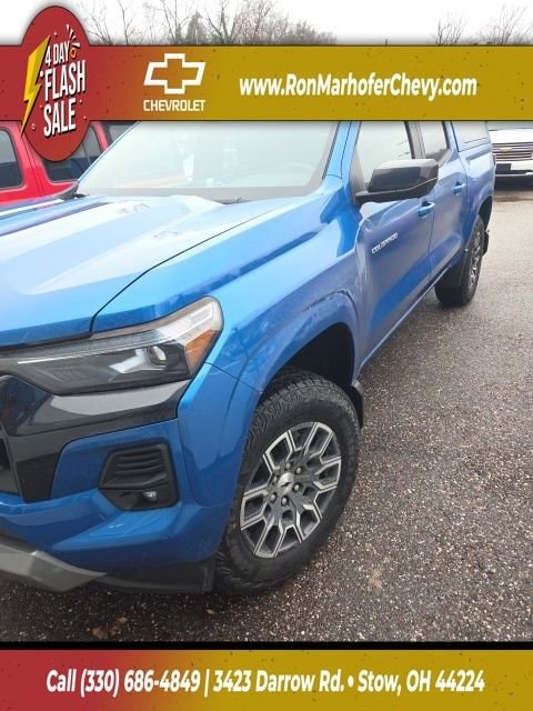 Ron Marhofer Chevrolet is proud to offer this great 2023 Chevrolet Colorado in Glacier Blue Metallic. This 2023 Chevrolet Colorado has passed our comprehensive inspection and comes with the following features; Technology Package (Adaptive Cruise Control, HD Surround Vision, and Rear Pedestrian Alert), Advanced Trailering Package (Trailering App), Heavy-Duty Trailering Package (Integrated Trailer Brake Controller), Preferred Equipment Group 4Z7 (Automatic Emergency Braking, Chevy Safety Assist, Electronic Automatic Cruise Control, Following Distance Indicator, Forward Collision Alert, Front Pedestrian & Bicyclist Braking, IntelliBeam Automatic High Beam On/Off, Lane Keep Assist w/Lane Departure Warning, and Rear-Window Electric Defogger), Safety Package (Blind Zone Steering Assist, Rear Cross Traffic Braking, and Rear Park Assist), Z71 Convenience Package II (8-Way Power Driver Seat Adjuster, Dual-Zone Automatic Air Conditioning, EZ-Lift & Lower Tailgate, Heated Driver & Front Passenger Seats, Inside Rear-View Auto-Dimming Mirror, Power Driver Lumbar Control Seat Adjuster, Remote Vehicle Starter System, StowFlex Tailgate Storage Compartment, Tailgate Keyed Cylinder Lock, Tilt & Telescoping Steering Column, and Wireless Charging), 4WD, 220 Amp Generator, 3.42 Rear Axle Ratio, 4-Way Manual Passenger Seat Adjuster, 4-Wheel Disc Brakes, 6 Speakers, 6-Speaker Audio System Feature, 6-Way Manual Driver Seat Adjuster, ABS brakes, Air Conditioning, Alloy wheels, AM/FM radio: SiriusXM, Apple CarPlay/Android Auto, Auto High-beam Headlights, Bose Premium 7-Speaker Audio System Feature, Brake assist, Bumpers: body-color, Cloth/Evotex Seat Trim, Compass, Delay-off headlights, Driver door bin, Driver vanity mirror, Dual front impact airbags, Dual front side impact airbags, Electronic Stability Control, Front anti-roll bar, Front Bucket Seats, Front Center Armrest, Front fog lights, Front reading lights, Front wheel independent suspension, Heated door mirrors, Illuminated entry, Low tire pressure warning, Navigation System, Occupant sensing airbag, Outside temperature display, Overhead airbag, Overhead console, Panic alarm, Passenger door bin, Passenger Seatback Map Pocket, Passenger vanity mirror, Power door mirrors, Power steering, Power windows, Radio data system, Radio: 11.3 Diagonal Advanced Color LCD Display, Rear reading lights, Rear step bumper, Rear window defroster, Remote keyless entry, Security system, SiriusXM Radio, Speed control, Speed-sensing steering, Split folding rear seat, Steering Wheel Mounted Audio Controls, Steering wheel mounted audio controls, Tachometer, Tilt steering wheel, Traction control, Trip computer, Variably intermittent wipers, Wheels: 18 x 8.5 Android Dark Full Gloss Aluminum, and Wireless Phone Projection.4 WHEEL DRIVE, HEATED SEATS, TOW PACKAGE, BLIND SPOT MONITOR/DETECTION, REAR PARK ASSIST, ADAPTIVE CRUISE CONTROL, REMOTE START, BLUETOOTH, REAR BACKUP CAMERA, APPLE CAR PLAY / ANDROID AUTO, POWER SEAT, ONE OWNER, ACCIDENT FREE CARFAX REPORT, 4WD, Adaptive Cruise Control, HD Surround Vision, Rear Pedestrian Alert, Technology Package.CARFAX One-Owner.Odometer is 5462 miles below market average!Ron Marhofer Chevrolet has a large selection of pre-owned cars, trucks and SUVâs. Each vehicle is thoroughly inspected and marked with our best, no hassle price up front.
