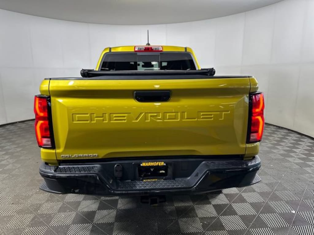 Ron Marhofer Chevrolet is proud to offer this good-looking 2023 Chevrolet Colorado in Nitro Yellow Metallic. This 2023 Chevrolet Colorado has passed our comprehensive inspection and comes with the following features; Preferred Equipment Group 4Z7 (Automatic Emergency Braking, Chevy Safety Assist, Electronic Automatic Cruise Control, Following Distance Indicator, Forward Collision Alert, Front Pedestrian & Bicyclist Braking, IntelliBeam Automatic High Beam On/Off, Lane Keep Assist w/Lane Departure Warning, and Rear-Window Electric Defogger), Z71 Convenience Package II (8-Way Power Driver Seat Adjuster, Dual-Zone Automatic Air Conditioning, EZ-Lift & Lower Tailgate, Heated Driver & Front Passenger Seats, Inside Rear-View Auto-Dimming Mirror, Power Driver Lumbar Control Seat Adjuster, Remote Vehicle Starter System, StowFlex Tailgate Storage Compartment, Tailgate Keyed Cylinder Lock, Tilt & Telescoping Steering Column, and Wireless Charging), 4WD, 3.42 Rear Axle Ratio, 4-Way Manual Passenger Seat Adjuster, 4-Wheel Disc Brakes, 6 Speakers, 6-Speaker Audio System Feature, 6-Way Manual Driver Seat Adjuster, ABS brakes, Air Conditioning, Alloy wheels, AM/FM radio: SiriusXM, Apple CarPlay/Android Auto, Auto High-beam Headlights, Brake assist, Bumpers: body-color, Cloth/Evotex Seat Trim, Compass, Delay-off headlights, Driver door bin, Driver vanity mirror, Dual front impact airbags, Dual front side impact airbags, Electronic Stability Control, Front anti-roll bar, Front Bucket Seats, Front Center Armrest, Front fog lights, Front reading lights, Front wheel independent suspension, Heated door mirrors, Illuminated entry, Low tire pressure warning, Navigation System, Occupant sensing airbag, Outside temperature display, Overhead airbag, Overhead console, Panic alarm, Passenger door bin, Passenger Seatback Map Pocket, Passenger vanity mirror, Power door mirrors, Power steering, Power windows, Radio data system, Radio: 11.3 Diagonal Advanced Color LCD Display, Rear reading lights, Rear step bumper, Rear window defroster, Remote keyless entry, Security system, SiriusXM Radio, Speed control, Speed-sensing steering, Split folding rear seat, Steering Wheel Mounted Audio Controls, Steering wheel mounted audio controls, Tachometer, Tilt steering wheel, Traction control, Trip computer, Variably intermittent wipers, Wheels: 18 x 8.5 Android Dark Full Gloss Aluminum, and Wireless Phone Projection.