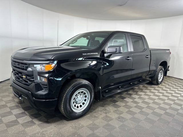 Ron Marhofer Chevrolet is proud to offer this dependable 2023 Chevrolet Silverado 1500 in Black. This 2023 Chevrolet Silverado 1500 has passed our comprehensive inspection and comes with the following features; Preferred Equipment Group 1WT (3.5 Monochromatic Display Driver Info Center, Black (Semi-Gloss) Front Bumper, Black (Semi-Gloss) Rear Bumper, Black Manual Outside Mirrors, Bluetooth® For Phone, Electrical Steering Column Lock, Front Frame-Mounted Black Recovery Hooks, HD Rear Vision Camera, Inside Rear-View Mirror w/Tilt, Locking Tailgate, Manual Tailgate Function w/No EZ Lift, Manual Tilt Wheel Steering Column, Power Front Windows w/Driver Express Up/Down, Power Front Windows w/Passenger Express Down, Power Rear Windows w/Express Down, Rear 60/40 Folding Bench Seat (Folds Up), Remote Keyless Entry, Rubberized-Vinyl Floor Covering, Solar Absorbing Tinted Glass, and Standard Tailgate), Standard Suspension Package, Trailering Package (Hitch Guidance), WT Convenience Package (Deep-Tinted Glass, Electric Rear-Window Defogger, Electronic Cruise Control, and Heated Power-Adjustable Outside Mirrors), WT Value Package, Silverado 1500 WT, 4D Crew Cab, 2.7L Turbo, 8-Speed Automatic, 4WD, Black, Jet Black Vinyl, 220 Amp Alternator, 3.42 Rear Axle Ratio, 4-Wheel Disc Brakes, 40/20/40 Front Split-Bench Seat, 6 Speakers, 6-Speaker Audio System, ABS brakes, Air Conditioning, AM/FM radio, Apple CarPlay/Android Auto, Auto High-beam Headlights, Auto-Locking Rear Differential, Automatic Emergency Braking, Brake assist, Chevytec Spray-On Black Bedliner, Delay-off headlights, Driver door bin, Dual front impact airbags, Dual front side impact airbags, Electronic Stability Control, Following Distance Indicator, Forward Collision Alert, Front anti-roll bar, Front Center Armrest w/Storage, Front Pedestrian Braking, Front reading lights, Front wheel independent suspension, Fully automatic headlights, Illuminated entry, Integrated Trailer Brake Controller, IntelliBeam Automatic High Beam On/Off, Lane Keep Assist w/Lane Departure Warning, Low tire pressure warning, Manual Tilt/Telescoping Steering Column (DISC), Molded Black Splash Guards (LPO), Not Equipped w/Steering Column Lock, Occupant sensing airbag, Outside temperature display, Overhead airbag, Overhead console, Panic alarm, Passenger door bin, Passenger vanity mirror, Power steering, Power windows, Premium audio system: Chevrolet Infotainment 3, Radio data system, Radio: Chevrolet Infotainment 3 System, Rear reading lights, Rear step bumper, Remote keyless entry, Speed-sensing steering, Split folding rear seat, Tachometer, Tilt steering wheel, Traction control, Trip computer, Variably intermittent wipers, Vinyl Seat Trim, Voltmeter, and Wheels: 17 x 8 Ultra Silver Painted Steel.BELOW MARKET AVERAGE PRICE, ONLY 38215 MILES, 4 WHEEL DRIVE, CRUISE CONTROL, ACCIDENT FREE CARFAX REPORT, Silverado 1500 WT, 4D Crew Cab, 2.7L Turbo, 8-Speed Automatic, 4WD, Black, Jet Black Vinyl.Priced below KBB Fair Purchase Price!Ron Marhofer Chevrolet has a large selection of pre-owned cars, trucks and SUVâs. Each vehicle is thoroughly inspected and marked with our best, no hassle price up front.