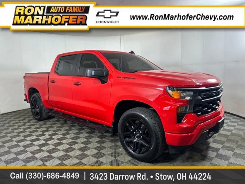 Ron Marhofer Chevrolet is proud to offer this trusty 2023 Chevrolet Silverado 1500 in Red. This 2023 Chevrolet Silverado 1500 has passed our comprehensive inspection and comes with the following features; Custom Convenience Package (Electric Rear-Window Defogger, EZ Lift Power Lock & Release Tailgate, LED Cargo Area Lighting, Remote Vehicle Starter System, and Theft Deterrent System (Unauthorized Entry)), Custom Value Package, High Capacity Suspension Package, Preferred Equipment Group 1CX (10-Way Power Driver Seat w/Lumbar, 120-Volt Bed Mounted Power Outlet, 120-Volt Instrument Panel Power Outlet, 3.5 Monochromatic Display Driver Info Center, Bluetooth® For Phone, Chevrolet Connected Access Capable, Color-Keyed Carpeting Floor Covering, Compass, Deep-Tinted Glass, Dual Rear USB Ports (Charge Only), Electrical Steering Column Lock, Electronic Cruise Control, Front Frame-Mounted Black Recovery Hooks, Front Rubberized Vinyl Floor Mats, HD Rear Vision Camera, Manual Tilt Wheel Steering Column, OnStar & Chevrolet Connected Services Capable, Power Front Windows w/Driver Express Up/Down, Power Front Windows w/Passenger Express Down, Power Rear Windows w/Express Down, Rear 60/40 Folding Bench Seat (Folds Up), Rear Rubberized-Vinyl Floor Mats, Remote Keyless Entry, SiriusXM Radio, Standard Tailgate, Wi-Fi Hot Spot Capable, and Wireless Phone Projection), Trailering Package (Hitch Guidance), Silverado 1500 Custom, 4D Crew Cab, 2.7L Turbo, 8-Speed Automatic, 4WD, Red, Jet Black Cloth, 3.42 Rear Axle Ratio, 4-Wheel Disc Brakes, 40/20/40 Front Split-Bench Seat, 6 Speakers, 6-Speaker Audio System, ABS brakes, Air Conditioning, Alloy wheels, AM/FM radio: SiriusXM, Apple CarPlay/Android Auto, Auto High-beam Headlights, Automatic Emergency Braking, Black Work Step (LPO), Brake assist, Bumpers: body-color, Chevytec Spray-On Black Bedliner, Cloth Seat Trim, Delay-off headlights, Driver door bin, Driver vanity mirror, Dual front impact airbags, Dual front side impact airbags, Electronic Stability Control, Following Distance Indicator, Forward Collision Alert, Front anti-roll bar, Front Center Armrest w/Storage, Front License Plate Kit, Front Pedestrian Braking, Front reading lights, Front wheel independent suspension, Fully automatic headlights, Hard-Folding Tonneau Cover (LPO), Heated door mirrors, Illuminated entry, IntelliBeam Automatic High Beam On/Off, Lane Keep Assist w/Lane Departure Warning, Low tire pressure warning, Not Equipped w/Rear USB Ports, Not Equipped w/Steering Column Lock, Occupant sensing airbag, Outside temperature display, Overhead airbag, Overhead console, Panic alarm, Passenger door bin, Passenger vanity mirror, Power door mirrors, Power driver seat, Power steering, Power windows, Premium audio system: Chevrolet Infotainment 3, Radio data system, Radio: Chevrolet Infotainment 3 System, Rear reading lights, Rear step bumper, Rear window defroster, Remote keyless entry, Security system, Speed control, Speed-sensing steering, Split folding rear seat, Tachometer, Tilt steering wheel, Traction control, Trip computer, Variably intermittent wipers, Voltmeter, Wheels: 20 x 9 Bright Silver Painted Aluminum, and Wheels: 20 x 9 High Gloss Black Painted Alum.BELOW MARKET AVERAGE PRICE, ONLY 26492 MILES, 4 WHEEL DRIVE, TOW PACKAGE, LANE DEPARTURE WARNING, BLIND SPOT MONITOR/DETECTION, FORWARD COLLISION ASSIST/ALERT, Silverado 1500 Custom, 4D Crew Cab, 2.7L Turbo, 8-Speed Automatic, 4WD, Red, Jet Black Cloth.Priced below KBB Fair Purchase Price!Ron Marhofer Chevrolet has a large selection of pre-owned cars, trucks and SUVâs. Each vehicle is thoroughly inspected and marked with our best, no hassle price up front.