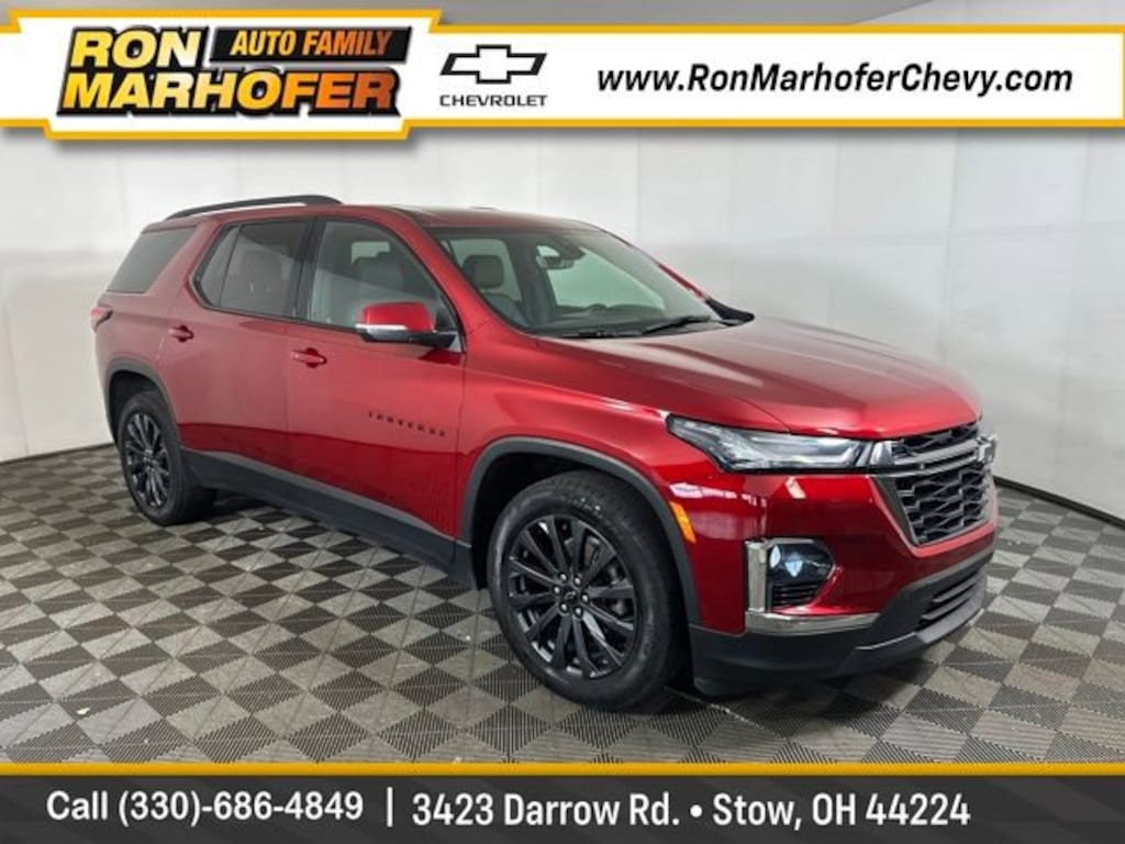 Ron Marhofer Chevrolet is proud to offer this superb 2023 Chevrolet Traverse in Radiant Red Tintcoat. This 2023 Chevrolet Traverse has passed our comprehensive inspection and comes with the following features; Preferred Equipment Group 2LT (Heated Driver & Front Passenger Seats), AWD, 10 Speakers, 3.49 Axle Ratio, 3rd row seats: split-bench, 4-Wheel Disc Brakes, 6-Way Power Front Passenger Seat, 8-Way Power Driver Seat Adjuster, ABS brakes, Air Conditioning, Alloy wheels, AM/FM radio: SiriusXM with 360L, Apple CarPlay/Android Auto, Auto High-beam Headlights, Auto-dimming Rear-View mirror, Automatic temperature control, Bose Premium 10-Speaker Audio System Feature, Brake assist, Bumpers: body-color, Compass, Delay-off headlights, Driver door bin, Driver vanity mirror, Dual front impact airbags, Dual front side impact airbags, Dual SkyScape 2-Panel Power Sunroof, Electronic Stability Control, Emergency communication system, Exterior Parking Camera Rear, Four wheel independent suspension, Front anti-roll bar, Front Bucket Seats, Front Center Armrest, Front dual zone A/C, Front Passenger 2-Way Power Lumbar, Front reading lights, Fully automatic headlights, Garage door transmitter, Heated door mirrors, Heated front seats, Heated steering wheel, Illuminated entry, Leather steering wheel, Low tire pressure warning, Navigation System, Not Equipped w/Rear Park Assist (060), Occupant sensing airbag, Outside temperature display, Overhead airbag, Overhead console, Panic alarm, Passenger door bin, Passenger vanity mirror, Perforated Leather-Appointed Seat Trim, Power door mirrors, Power Driver Lumbar Control, Power driver seat, Power Liftgate, Power passenger seat, Power steering, Power windows, Premium audio system: Chevrolet Infotainment 3 Plus, Radio data system, Radio: Chevrolet Infotainment 3 Plus System w/Navi, Rear air conditioning, Rear anti-roll bar, Rear reading lights, Rear window defroster, Rear window wiper, Remote keyless entry, Security system, SiriusXM w/360L, Speed control, Speed-sensing steering, Spoiler, Steering wheel mounted audio controls, Tachometer, Telescoping steering wheel, Tilt steering wheel, Traction control, Trip computer, Turn signal indicator mirrors, Variably intermittent wipers, Voltmeter, and Wheels: 20 Dark Aluminum.