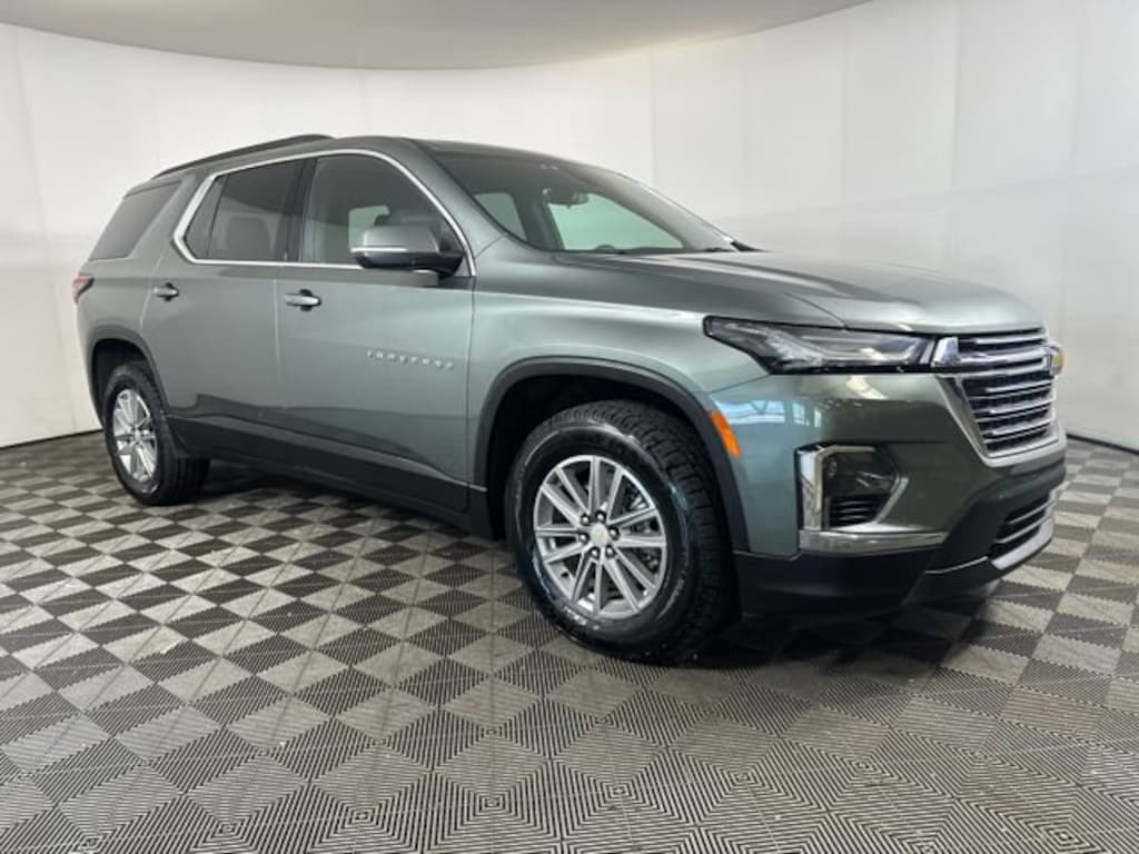 Ron Marhofer Chevrolet is proud to offer this gorgeous 2023 Chevrolet Traverse in Silver Sage Metallic. This 2023 Chevrolet Traverse has passed our comprehensive inspection and comes with the following features; Preferred Equipment Group 3LT (Heated Driver & Front Passenger Seats), 3.49 Axle Ratio, 3rd row seats: split-bench, 4-Wheel Disc Brakes, 6 Speakers, 6-Speaker Audio System Feature, 6-Way Power Front Passenger Seat, 8-Way Power Driver Seat Adjuster, ABS brakes, Air Conditioning, Alloy wheels, AM/FM radio: SiriusXM with 360L, Apple CarPlay/Android Auto, Auto High-beam Headlights, Automatic temperature control, Black Roof Rails, Brake assist, Bumpers: body-color, Compass, Delay-off headlights, Driver door bin, Driver vanity mirror, Dual front impact airbags, Dual front side impact airbags, Electronic Stability Control, Emergency communication system, Exterior Parking Camera Rear, Four wheel independent suspension, Front anti-roll bar, Front Bucket Seats, Front Center Armrest, Front dual zone A/C, Front Passenger 2-Way Power Lumbar, Front reading lights, Fully automatic headlights, Garage door transmitter, Heated door mirrors, Heated front seats, Heated steering wheel, Illuminated entry, Leather steering wheel, Leather-Appointed Seat Trim, Low tire pressure warning, Not Equipped w/Rear Park Assist (060), Occupant sensing airbag, Outside temperature display, Overhead airbag, Overhead console, Panic alarm, Passenger door bin, Passenger vanity mirror, Power door mirrors, Power Driver Lumbar Control, Power driver seat, Power Liftgate, Power passenger seat, Power steering, Power windows, Premium audio system: Chevrolet Infotainment 3 Plus, Radio data system, Radio: Chevrolet Infotainment 3 Plus System, Rear air conditioning, Rear anti-roll bar, Rear reading lights, Rear window defroster, Rear window wiper, Remote keyless entry, Security system, SiriusXM w/360L, Speed control, Speed-sensing steering, Spoiler, Steering wheel mounted audio controls, Tachometer, Telescoping steering wheel, Tilt steering wheel, Traction control, Trip computer, Turn signal indicator mirrors, Variably intermittent wipers, Voltmeter, and Wheels: 18 Bright Silver-Painted Aluminum.