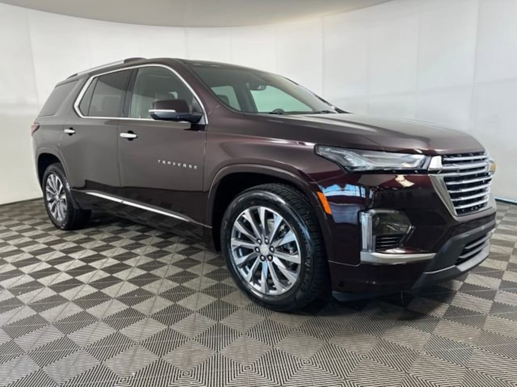 Ron Marhofer Chevrolet is proud to offer this charming 2023 Chevrolet Traverse in Black Cherry Metallic. This 2023 Chevrolet Traverse has passed our comprehensive inspection and comes with the following features; Preferred Equipment Group 1LZ (Heated 2nd Row Outboard Position Seats, Heated Driver & Front Passenger Seats, and Ventilated Driver & Front Passenger Seats), AWD, 10 Speakers, 3.49 Axle Ratio, 3rd row seats: split-bench, 4-Wheel Disc Brakes, 6-Way Power Front Passenger Seat, 8-Way Power Driver Seat Adjuster, ABS brakes, Air Conditioning, Alloy wheels, AM/FM radio: SiriusXM with 360L, Apple CarPlay/Android Auto, Auto High-beam Headlights, Auto-dimming door mirrors, Auto-dimming Rear-View mirror, Automatic temperature control, Bose Premium 10-Speaker Audio System Feature, Brake assist, Bumpers: body-color, Compass, Delay-off headlights, Driver door bin, Driver vanity mirror, Dual front impact airbags, Dual front side impact airbags, Dual SkyScape 2-Panel Power Sunroof, Electronic Stability Control, Emergency communication system, Exterior Parking Camera Rear, Four wheel independent suspension, Front anti-roll bar, Front Bucket Seats, Front Center Armrest, Front dual zone A/C, Front Passenger 2-Way Power Lumbar, Front reading lights, Fully automatic headlights, Garage door transmitter, Heated door mirrors, Heated front seats, Heated rear seats, Heated steering wheel, Illuminated entry, Leather steering wheel, Low tire pressure warning, Memory seat, Navigation System, Not Equipped w/Rear Park Assist (060), Occupant sensing airbag, Outside temperature display, Overhead airbag, Overhead console, Panic alarm, Passenger door bin, Passenger vanity mirror, Perforated Leather-Appointed Seat Trim, Power door mirrors, Power Driver Lumbar Control, Power driver seat, Power Liftgate, Power passenger seat, Power steering, Power windows, Premium audio system: Chevrolet Infotainment 3 Plus, Radio data system, Radio: Chevrolet Infotainment 3 Plus System w/Navi, Rear air conditioning, Rear anti-roll bar, Rear reading lights, Rear window defroster, Rear window wiper, Remote keyless entry, Security system, SiriusXM w/360L, Speed control, Speed-sensing steering, Spoiler, Steering wheel memory, Steering wheel mounted audio controls, Tachometer, Telescoping steering wheel, Tilt steering wheel, Traction control, Trip computer, Turn signal indicator mirrors, Variably intermittent wipers, Ventilated front seats, Voltmeter, and Wheels: 20 Metallic Machined-Face Aluminum.