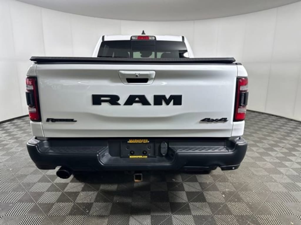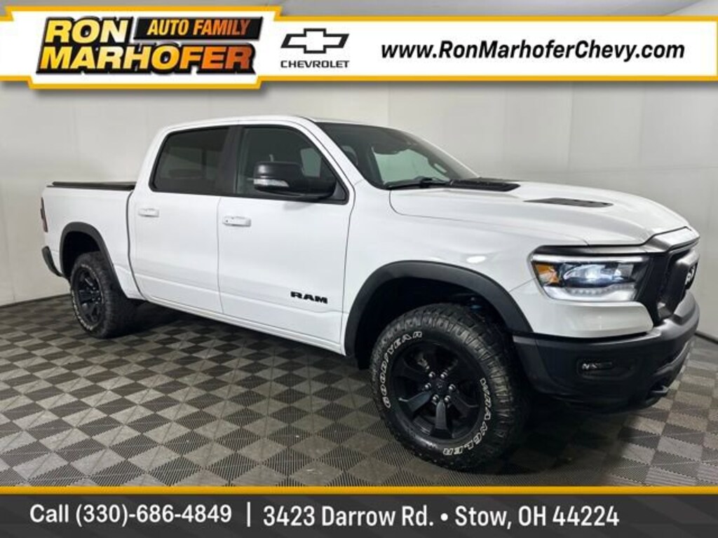 Ron Marhofer Chevrolet is proud to offer this good-looking 2021 Ram 1500 in Bright White Clearcoat. This 2021 Ram 1500 has passed our comprehensive inspection and comes with the following features; Night Edition (Black Front Bumper w/Black Plate, Grille Moustache Black Outline Texture 3, RAM Grille Badge - Black, and Wheels: 18 x 8.0 Gloss Black), Quick Order Package 25W Rebel, Rebel Level 2 Equipment Group (115V Auxiliary Rear Power Outlet, Air Conditioning ATC w/Dual Zone Control, Auto-Dimming Exterior Driver Mirror, Black Premium Power Mirrors, Body Color Door Handles, Exterior Mirrors Courtesy Lamps, Exterior Mirrors w/Supplemental Signals, Foam Bottle Insert (Door Trim Panel), Heated Front Seats, Heated Steering Wheel, Media Hub w/2 Charge Only USBs, ParkSense Front/Rear Park Assist w/Stop, Power Adjustable Pedals, Power-Folding Mirrors, Radio: Uconnect 4 w/8.4 Display, Rain Sensitive Windshield Wipers, Rear Dome w/On/Off Switch Lamp, Rear Underseat Compartment Storage, Rear Window Defroster, Remote Proximity Keyless Entry, Security Alarm, Sun Visors w/Illuminated Vanity Mirrors, and Universal Garage Door Opener), 3.92 Rear Axle Ratio, 4 Way Front Headrests, 4-Wheel Disc Brakes, 48V Belt Starter Generator, 6 Speakers, 9 Amplified Speakers w/Subwoofer, ABS brakes, Air Conditioning, Alloy wheels, AM/FM radio: SiriusXM, Auto-dimming Rear-View mirror, Black Exterior Mirrors, Brake assist, Bucket Seats, Cloth/Vinyl Low Back Bucket Seats, Compass, Delay-off headlights, Driver door bin, Dual front impact airbags, Dual front side impact airbags, Electronic Stability Control, For More Info, Call 800-643-2112, Front anti-roll bar, Front Bucket Seats, Front Center Armrest w/Storage, Front fog lights, Front License Plate Bracket, Front reading lights, Front Seat Back Map Pockets, Front wheel independent suspension, Full Length Upgraded Floor Console, Fully automatic headlights, GPS Antenna Input, Heated door mirrors, Illuminated entry, Instrument Cluster Theme 5 - Rebel 2, Integrated Voice Command w/Bluetooth, Leather steering wheel, Low tire pressure warning, Occupant sensing airbag, Outside temperature display, Overhead airbag, Overhead console, Panic alarm, ParkView Rear Back-Up Camera, Passenger door bin, Passenger vanity mirror, Power 4-Way Driver Lumbar Adjust, Power door mirrors, Power driver seat, Power steering, Power windows, Radio data system, Radio: Uconnect 3 w/5 Display, Rear 60/40 Folding Seat, Rear anti-roll bar, Rear seat center armrest, Rear step bumper, Rear Wheelhouse Liners, Remote keyless entry, Remote Start System, SiriusXM Radio Service, SiriusXM Satellite Radio, Speed control, Split folding rear seat, Steering wheel mounted audio controls, Tachometer, Telescoping steering wheel, Tilt steering wheel, Traction control, Trip computer, Variably intermittent wipers, Voltmeter, and Wheels: 18 x 8.0 Painted Mid-Gloss Black.