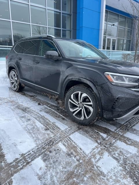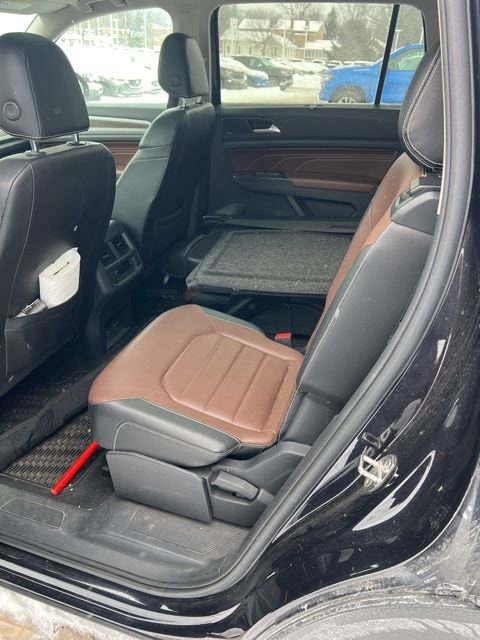 Ron Marhofer Chevrolet is proud to offer this beautiful-looking 2021 Volkswagen Atlas in Deep Black. This 2021 Volkswagen Atlas has passed our comprehensive inspection and comes with the following features; Trailer Hitch Extras, 12 Speakers, 2nd-Row Dual Captain's Chairs, 3.60 Axle Ratio, 3rd row seats: split-bench, 4-Wheel Disc Brakes, ABS brakes, Active Blind Spot Monitor, Air Conditioning, Alloy wheels, AM/FM radio: SiriusXM, Auto High-beam Headlights, Auto-dimming Rear-View mirror, Automatic temperature control, Brake assist, Bumpers: body-color, Compass, Delay-off headlights, Driver door bin, Driver vanity mirror, Dual front impact airbags, Dual front side impact airbags, Electronic Stability Control, Emergency communication system: VW Car-Net services (capabilities require enrollment or subscription), First Aid Kit, Four wheel independent suspension, Front anti-roll bar, Front Bucket Seats, Front Center Armrest, Front dual zone A/C, Front fog lights, Front reading lights, Fully automatic headlights, Heated door mirrors, Heated front seats, Heated rear seats, Heated steering wheel, Heavy Duty Trunk Liner w/VW CarGo Blocks, Htd/Actively Ventilated Comfort Front Sport Seats, Illuminated entry, Leather Shift Knob, Low tire pressure warning, Memory seat, Navigation System, Occupant sensing airbag, Outside temperature display, Overhead airbag, Overhead console, Panic alarm, Passenger door bin, Passenger vanity mirror, Perforated Vienna Leather Seating Surfaces, Power door mirrors, Power driver seat, Power Liftgate, Power moonroof, Power passenger seat, Power steering, Power windows, Privacy Cover, Radio data system, Rain sensing wipers, Rear air conditioning, Rear anti-roll bar, Rear audio controls, Rear Bumper Applique in Chrome, Rear reading lights, Rear seat center armrest, Rear window defroster, Rear window wiper, Remote CD player, Remote keyless entry, Roadside Assistance Kit, Roof rack: rails only, Rubber Mats Kit - Captain's Chairs, Security system, Speed control, Speed-sensing steering, Split folding rear seat, Spoiler, Standard Suspension, Steering wheel mounted audio controls, Tachometer, Telescoping steering wheel, Tilt steering wheel, Traction control, Trip computer, Turn signal indicator mirrors, Variably intermittent wipers, Ventilated front seats, VW Care, and Wheels: 20 5-Spoke 2-Tone Machined Alloy.